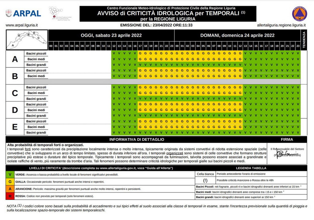Sarà in vigore dalle 17 di oggi alle 13 di domani. Attenzione anche alle mareggiate