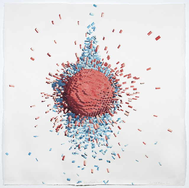 Dagoberto Rodríguez ci introduce in un mondo in cui l’ironia e la nostalgia del gioco, forse mai sperimentato, fanno da contraltare a concetti e idee, che oggi più che mai, richiamano l’uomo a riflessioni profonde sul piano sociale. Con una intuizione magica, ha utilizzato la forma del Lego, ripetuto all’infinito, acquerellata con una tecnica sopraffina, per dare vita ad immagini di forte e coinvolgente impatto visivo.