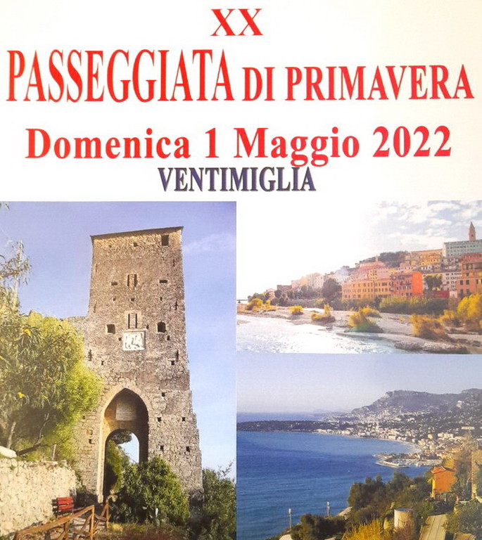 Si svolge domenica prossima la tradizionale 'Passeggiata di Primavera', patrocinata dal Comune di Ventimiglia ed organizzata dal locale CAI, con la collaborazione del comitato pro Centro Storico, le 'Ragazze di Wilma' e gli Alpini in Congedo.