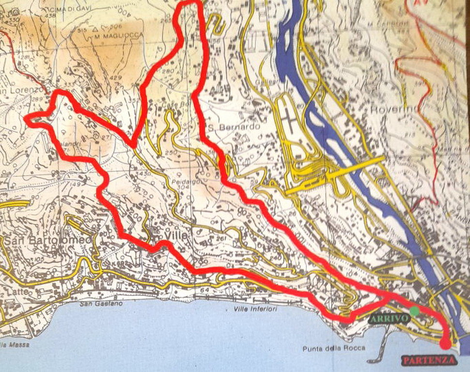 Si tratta di una passeggiata non competitiva, da Marina San Giuseppe, Piazza Marconi, che si snoda lungo un suggestivo percorso, indicato da frecce gialle e nastro colorato, attraverso la città medioevale e poi la Via Julia Augusta, Porta Canarda, frazione Ville, Calandri quindi su sino a San Lorenzo, Castel d’Appio, Monte Magliocca, discesa a Seglia, San Bernardo, Due Camini e arrivo in piazza Chiesa di San Michele.