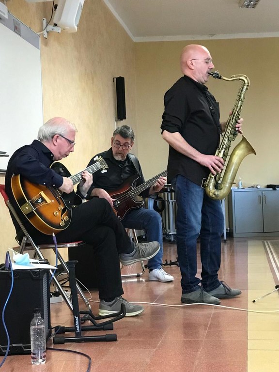 Attraverso l'esecuzione di diversi brani dei più rappresentativi compositori di Jazz, quali Mancini, Parker, Ellington, Jobim, Legrand ed altri i nostri jazzisti locali Marco Moro (Sax & Flute), Adriano Ghirardo (Guitar), Marco Bottini (Electric Bass) hanno entusiasmato il numeroso pubblico presente all'evento, che ha molto apprezzato la bravura e l'empatia dei musicisti.