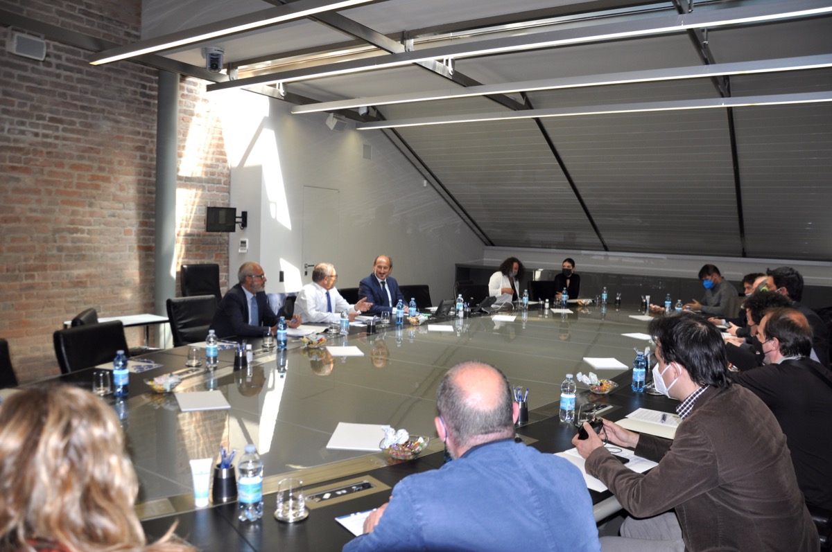 [Un momento dell'incontro di stamane a Palazzo Banca d'Alba]