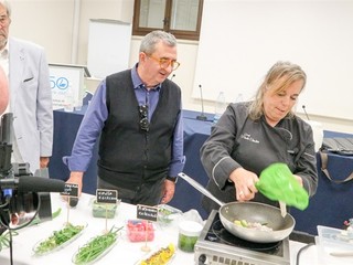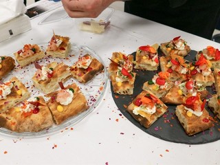 Gli chef Giovanni Senese e Paola Chiolini hanno aperto la manifestazione con due interessanti show cooking in cui hanno proposto due piatti con i fiori protagonisti del gusto e sapore: un calamaro ripieno di Nasturzio in crema di begonia la proposta della chef della Balena bianca di Vallecrosia e una pizza condita con fiori di Begonia, Nasturzio e Calendula, la preparazione dello chef pizzaiolo della Pizzeria Senese di Sanremo.
