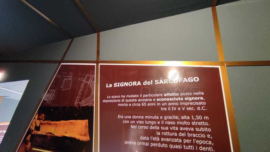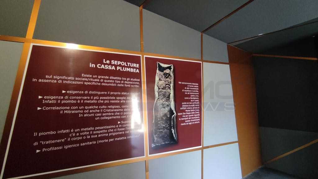 Il tunnel che corre sotto l'Aurelia e collega l'area archeologica delle terme con il teatro è stato completamente rinnovato, trasformandosi da luogo di passaggio a nuovo spazio museale dedicato alla necropoli del ll-V secolo. Nel nuovo ambiente multimediale il visitatore, accolto da un'Ode di Orazio, incontra una suggestiva proiezione che rievoca la vita di una donna dell'antica Albintimilium. L'intervento prende spunto dal rinvenimento di una sepoltura femminile, eccezionale per il sarcofago di piombo, materiale prezioso e raramente utilizzato, che è oggi conservata nell'Antiquarium. Le buone condizioni conservative hanno consentito di rinvenire tracce di un sudario, di un cuscino in tessuto di canapa e offerte floreali che hanno permesso di datare la sepoltura all'inizio della primavera.