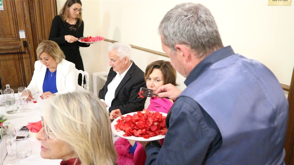 La cena di gala è stata una festa divertente e simpatica con oltre 140 partecipanti ed un menù originale realizzato dallo chef executive di AdHoc, Matteo Riccitelli, che ha proposto un delizioso menù con piatti realizzati con i fiori eduli dell’azienda Ravera Bio di Albenga.