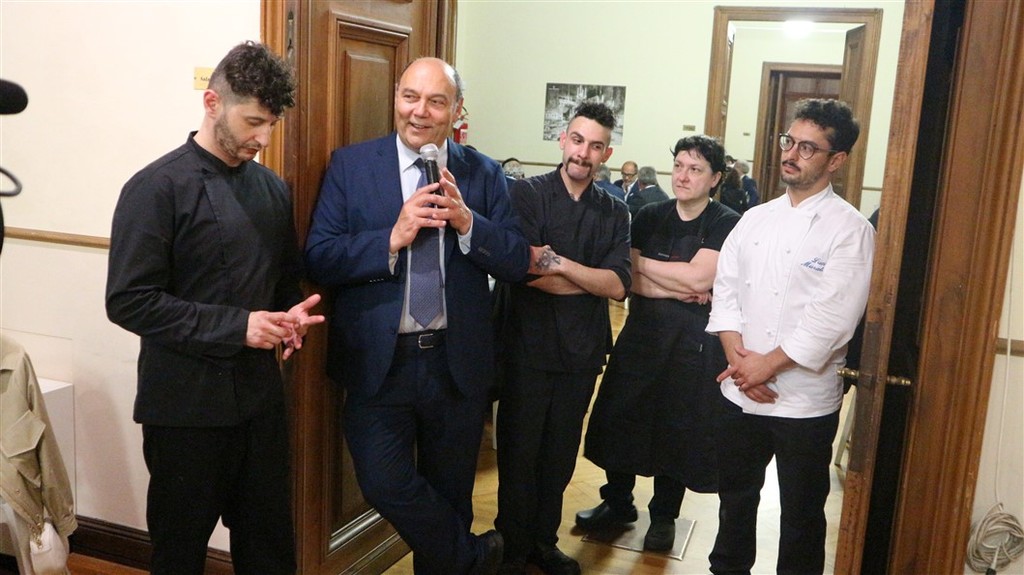 Infine un dessert preparato dallo chef Luca Muratore, collaboratore della Cna di Imperia che ha proposto un “Omaggio ai Fiori di arancio e agli agrumi della Riviera”
