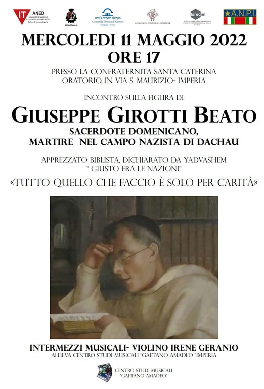 L’evento è stato organizzato dalle sezioni di Savona e Imperia dell’Aned e dall’Istituto storico della resistenza di Imperia con la collaborazione di altri Enti e organizzazioni. La sua beatificazione ha avuto luogo ad Alba il 26 aprile 2014. Nell’ ambito dell’incontro è stato proiettato un film sulla sua figura con un intervento di padre Alberto Casella, sacerdote imperiese che ha operato nelle parrocchie della Sacra Famiglia, nella chiesa dell’Annunziata di piazza Calvi, nel Duomo di Porto Maurizio era in convento a Milano nella comunità dei frati domenicani.