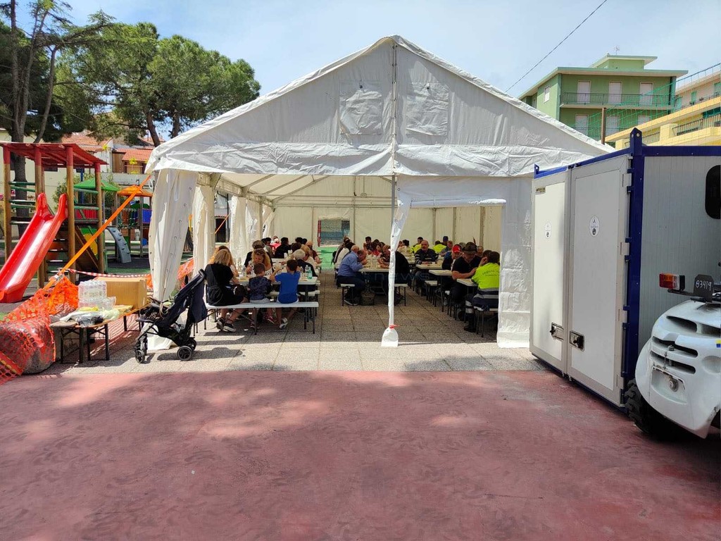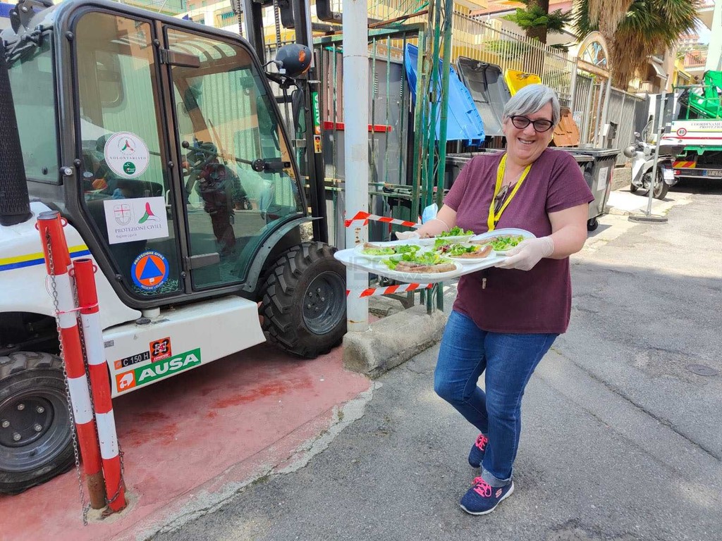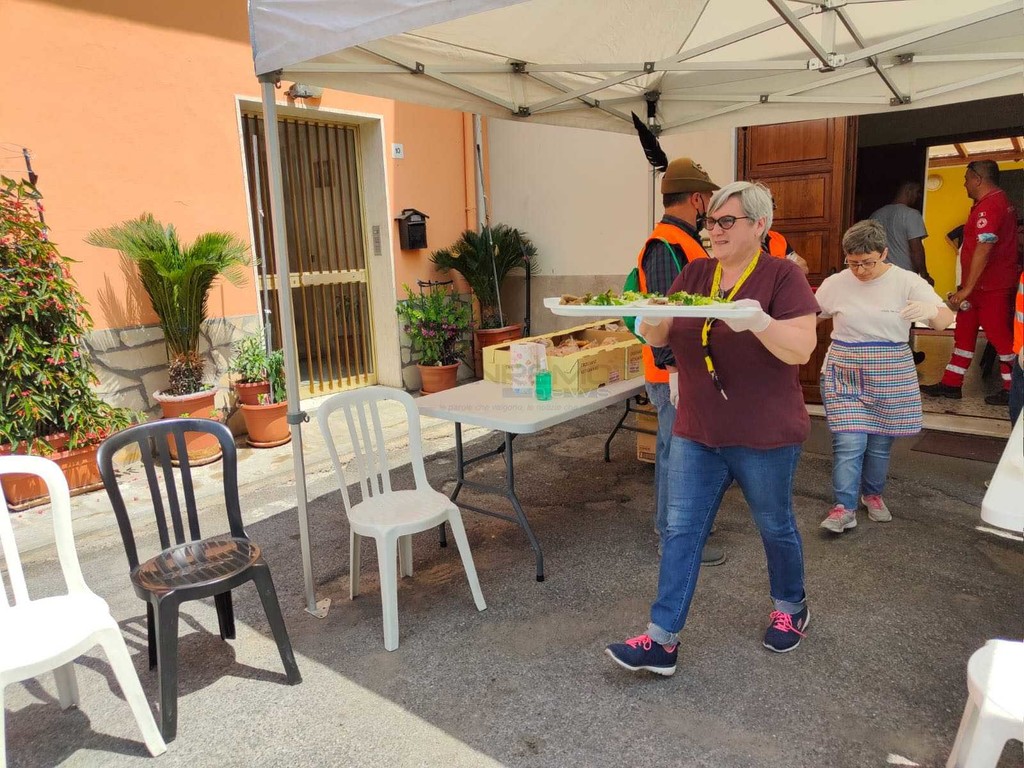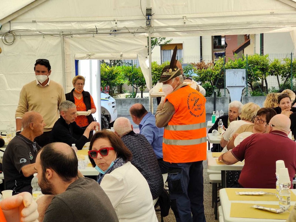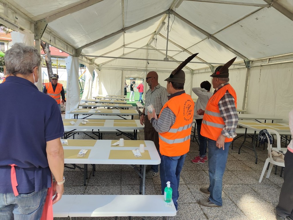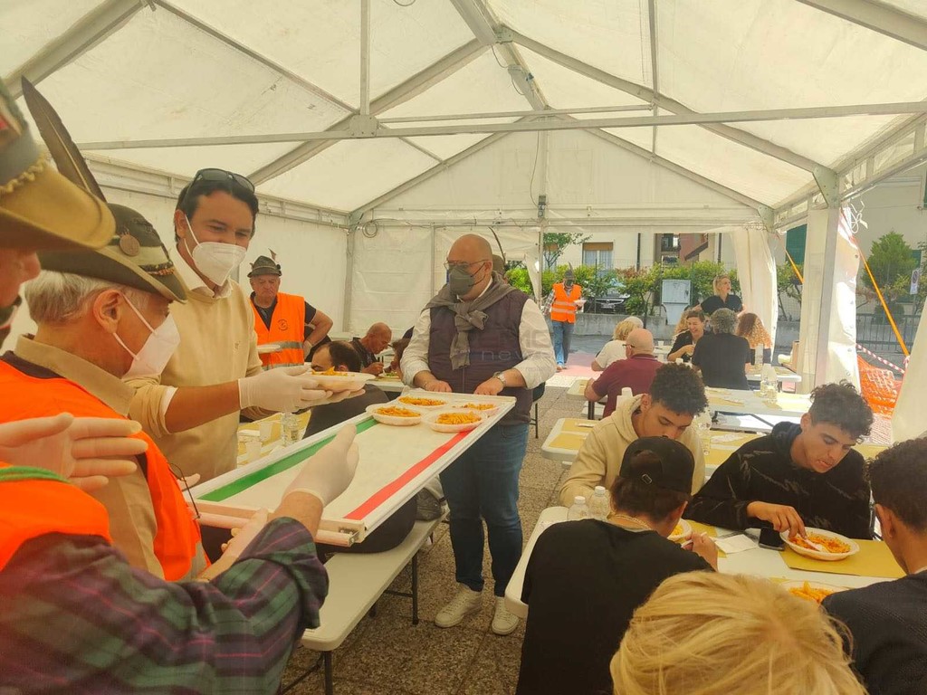 Bomba Day, agli ‘sfollati’ di Riva distribuito un rancio alpino cucinato dal gruppo Ana (foto e video)