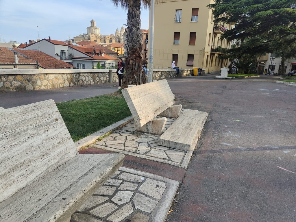 Imperia sempre più nella morsa dei vandali: l’ultimo episodio in ordine di tempo riguarda una panchina di marmo distrutta ai giardini di piazza Roma a Porto Maurizio, come segnalato da un nostro lettore.