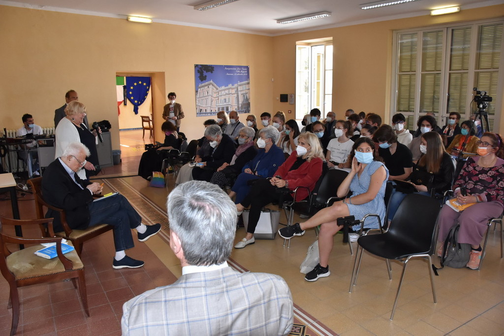 Si è svolta oggi a Villa Magnolie, sede distaccata del Liceo Cassini di Sanremo, una conferenza aperta al pubblico con protagonisti Giancarlo Caselli, magistrato simbolo della lotta al terrorismo e alla mafia, e il filologo Corrado Bologna, autore anche di molti libri dell’editoria scolastica.