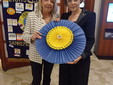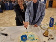 Segue lo scambio rituale dei guidoncini, e con un sincero applauso di benvenuto ai neo soci, fa il suo ingresso un splendida torta decorata con l’effige dei due clubs! Viene donata alla presidente una bella coccarda con i colori del lions molto gradita e che rappresenta un punto in comune tra di noi al momento dei meeting prossimi!