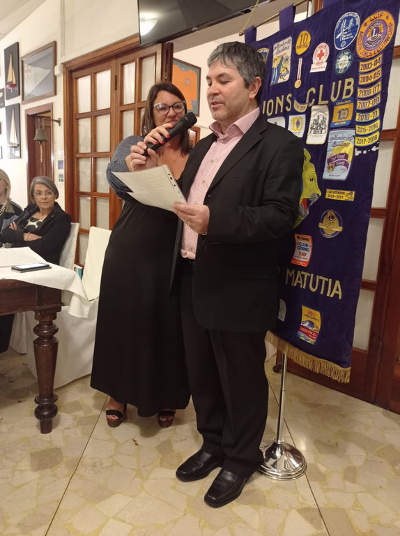 La serata prosegue con l’ingresso di due nuovi soci: Glauco Ferrara dottore, commercialista con studio ad Imperia presentato da Roberta Rota che leggendo il suo curriculum ha sottolineato i valori umani e sociali, e Carlo Palmero comandante di marina in pensione il cui padrino pres. Ostanel ha esaltato le capacità di servire con impegno rendendosi utile nei prossimi services del Matutia.