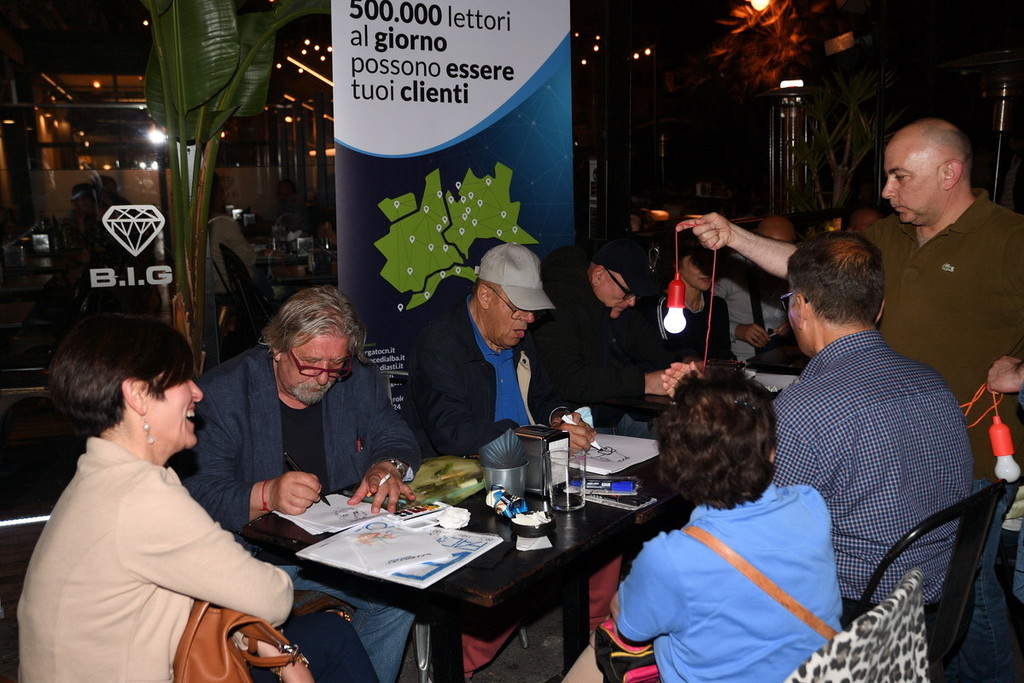 La festa di venerdì sera ha visto la partecipazione di un decano dei disegnatori come il bolognese Giorgio Matitaccia Serra, del siciliano Filippo Frago, la calabrese Elmar e il sanremese di adozione Tiziano Riverso. In totale hanno realizzato 45 fra caricature e disegni in poco più di due ore.