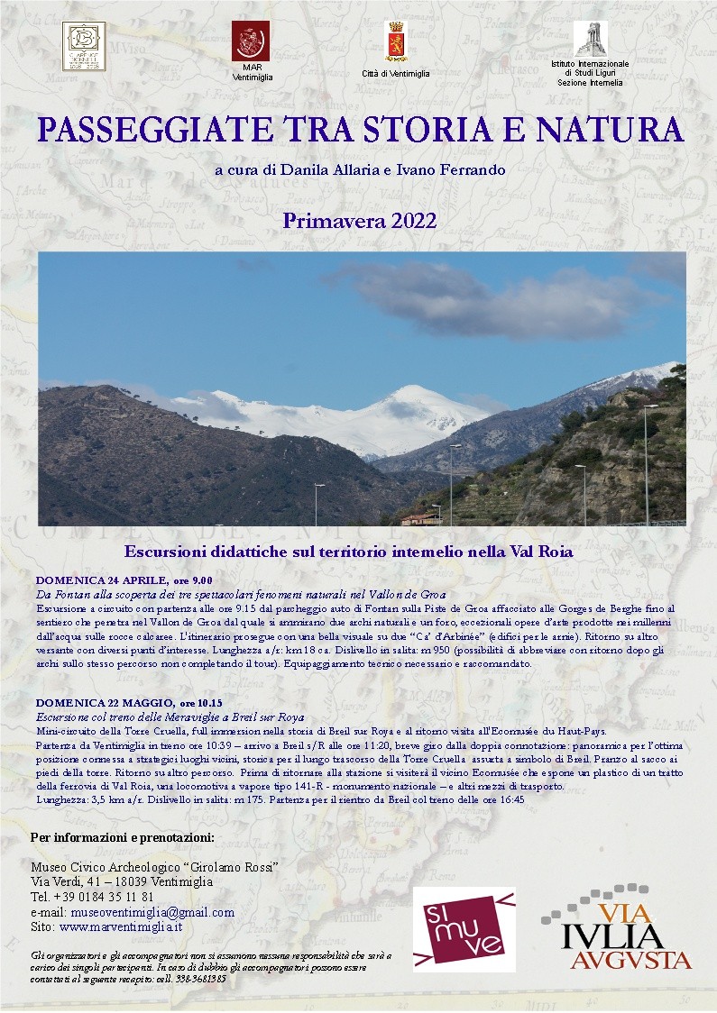 10.15. ‘Passeggiate tra storia e natura’: escursione col treno delle meraviglie a Breil sur Roya: mini-circuito della Torre Cruella, full immersioni nella storia di Breil sur Roya e al ritorno visita all'Ecomusée du Haut-Pays. Partenza dalla stazione di Ventimiglia, info e prenotazioni 0184 351181 (locandina)