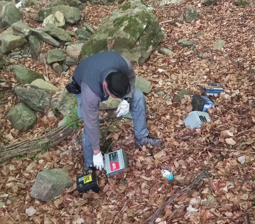 Sanremo: batterie per auto abbandonate nel bosco in zona ‘Binelle’, interviene della Polizia Provinciale (Foto)