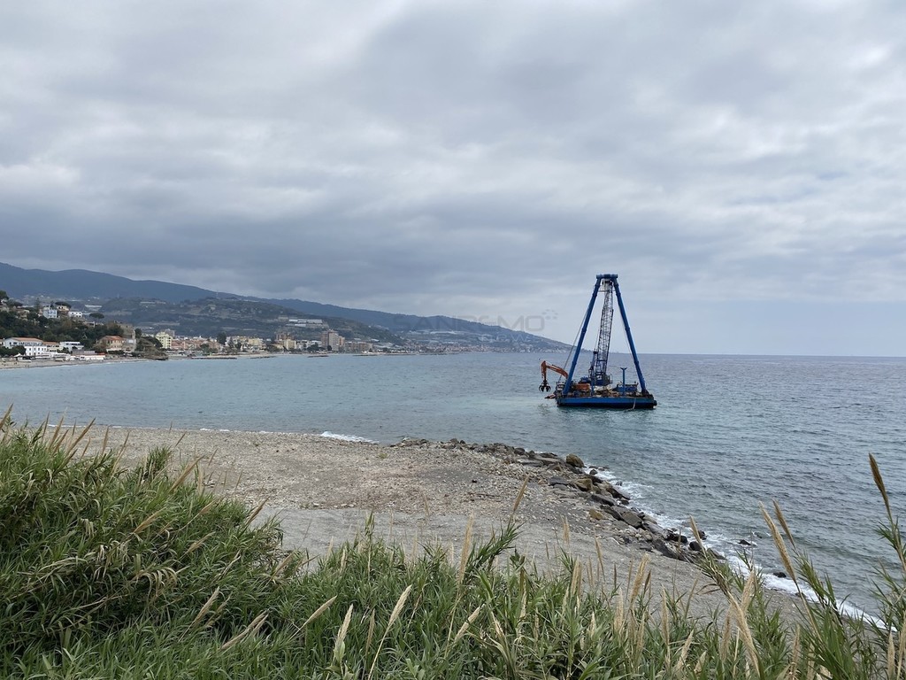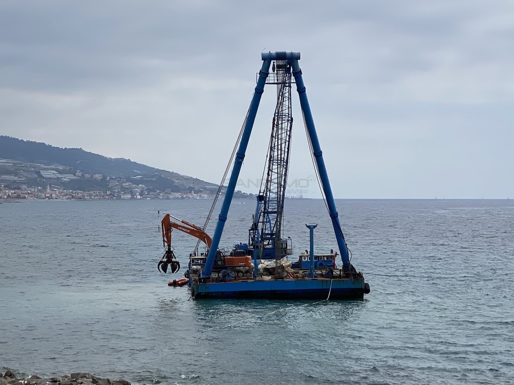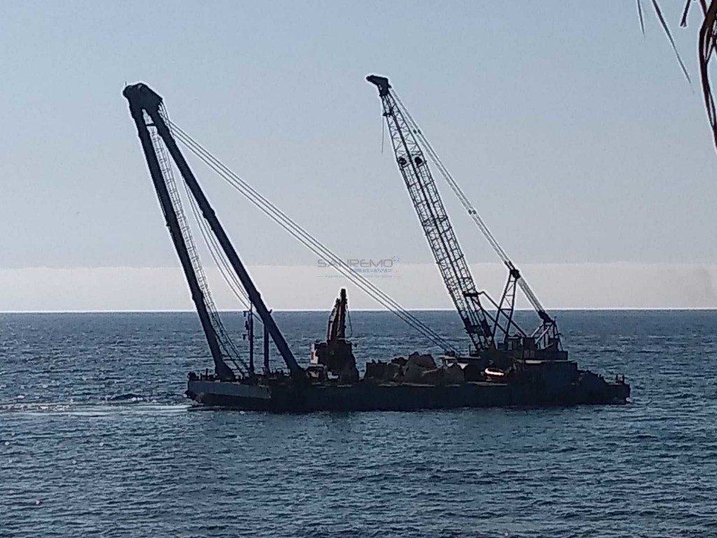 Da qualche giorno i residenti di Bussana Mare vedono al lavoro la chiatta della ditta C.E.M. impegnata nel previsto lavoro per la ricostruzione della scogliera soffolta.