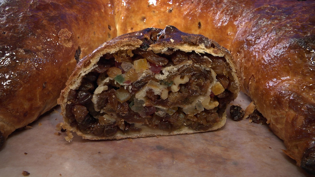 e una sorta di strudel con uvetta dalla forma di ferro di cavalo dal gusto gradevole.
