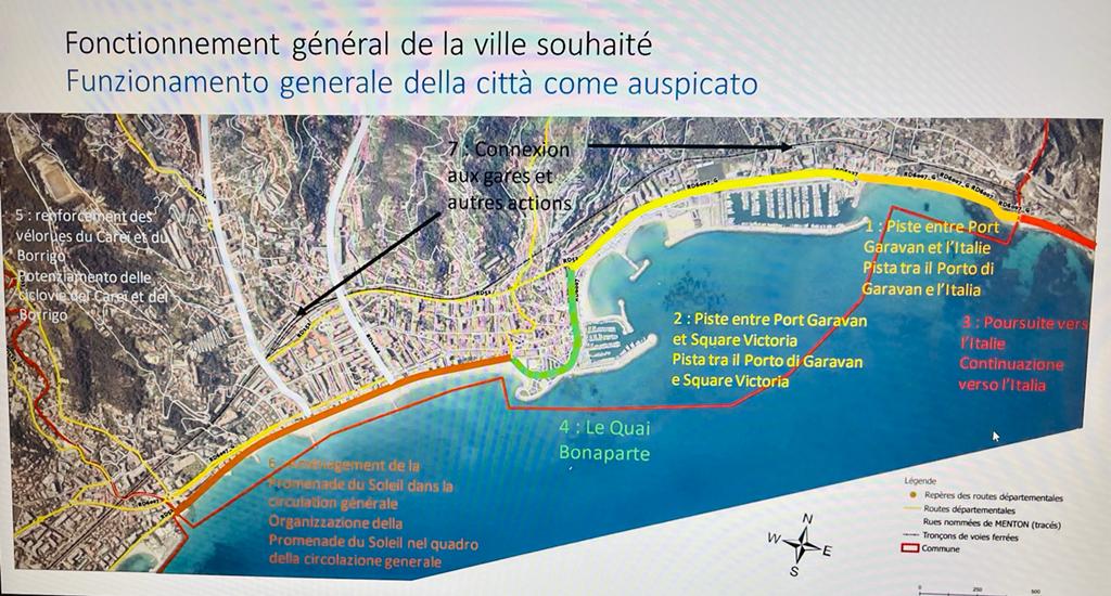 I rappresentanti del consorzio dei Comuni francesi hanno esposto alcuni progetti di Rigenerazione Urbana che includono il proseguo della Pista Ciclopedonale del Ponente in Costa Azzurra. Il Comune di Mentone, infatti, realizzerà a breve un tratto di pista ciclabile compreso tra il Porto Garavan e l’Italia. L’intervento fa parte di un progetto di rigenerazione più ampio e proseguirà anche verso il Comune di Roquebrune e assicurerà il collegamento con le stazioni ferroviarie. Per garantire continuità tra i tratti dei due Paesi, il consorzio francese ha ipotizzato di proseguire i lavori fino al posteggio situato davanti al museo archeologico dei Balzi Rossi a Ventimiglia.