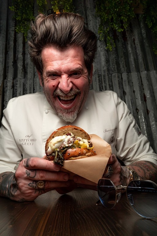 Vittorio Gucci è un’esplosione di energia creativa, nell'ultimo periodo è stato ospite a fiere di settore come quella di Rimini, il Beer & Food Attraction, grazie alla collaborazione con Red Bull e al Cibus di parma con lo Sliding Cooking Show, uno Street food 3.0 creato dall'azienda Futility appositamente per lo Chef, una cucina innovativa che chiusa misura 1.70m è aperta diventa 3.20m con tutte le attrezzature da lavoro .