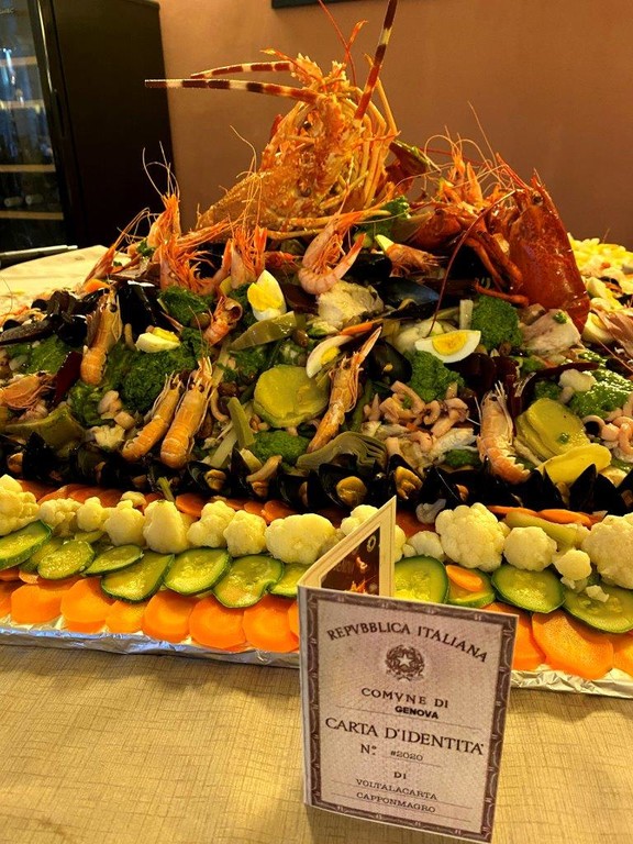 Assoluto protagonista è il cappon magro e l’interprete principale è Maurizio Pinto, chef del Voltalacarta di Genova, ambasciatore – con la sua personale ricetta, che prevede trenta ingredienti - di questo straordinario piatto, tradizionale ligure, nel mondo.
