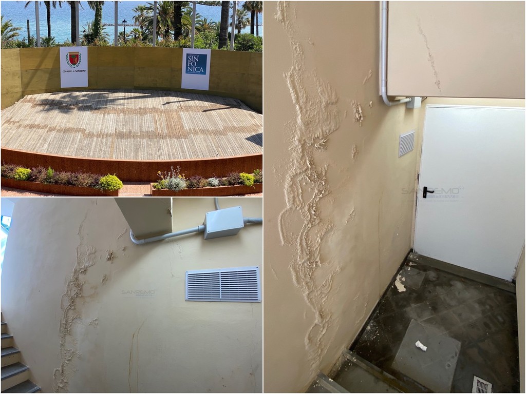 Subito il Comune ha effettuato un sopralluogo per verificare la situazione. È emerso che, per quanto riguarda il palco, non sono presenti danni o malfunzionamenti a tubi o canaline e, quindi, le ben visibili macchie di umido non sono da imputare a guasti.