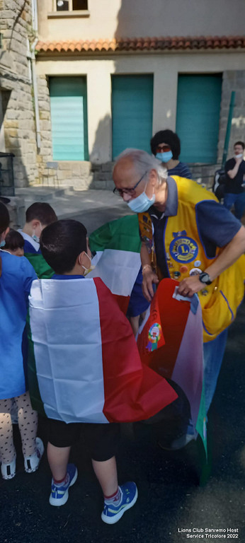 Il 30 maggio e il 1 giugno, alcuni soci del Lions Club Sanremo Host, hanno fatto visita in accordo con i dirigenti scolastici, agli alunni delle classi primarie di Vª elementare di Sanremo senza dimenticare quelle che sono ubicate nelle frazioni, per consegnare a tutti i bambini la nostra bandiera tricolore. Grande partecipazione da parte degli alunni, molto ben preparati dalle maestre, dove alcune classi, hanno realizzato disegni, poesie e cantato l'inno d'italia. Grande soddisfazione ed emozione da parte del Presidente Giancarlo Buschiazzo e dei soci Lions Vincenzo Benza, Oriana Ragazzo, Domenico Frattarola, Guido De Angeli, Giorgio Cravaschino, Stefania Balestra e Roberto Pecchinino, per l'accoglienza ricevuta da parte dei ragazzi e dei maestri e dirigenti scolastici.