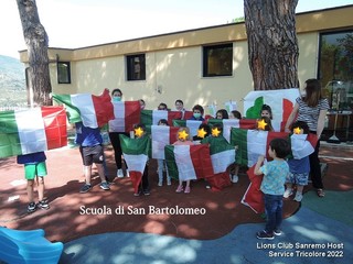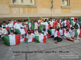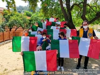 Il 30 maggio e il 1 giugno, alcuni soci del Lions Club Sanremo Host, hanno fatto visita in accordo con i dirigenti scolastici, agli alunni delle classi primarie di Vª elementare di Sanremo senza dimenticare quelle che sono ubicate nelle frazioni, per consegnare a tutti i bambini la nostra bandiera tricolore. Grande partecipazione da parte degli alunni, molto ben preparati dalle maestre, dove alcune classi, hanno realizzato disegni, poesie e cantato l'inno d'italia. Grande soddisfazione ed emozione da parte del Presidente Giancarlo Buschiazzo e dei soci Lions Vincenzo Benza, Oriana Ragazzo, Domenico Frattarola, Guido De Angeli, Giorgio Cravaschino, Stefania Balestra e Roberto Pecchinino, per l'accoglienza ricevuta da parte dei ragazzi e dei maestri e dirigenti scolastici.