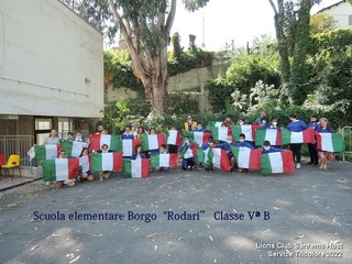 Per tutti gli alunni è stata una grande festa e hanno salutato i soci del Lions Club Sanremo Host, sventolando con gioia la bandiera tricolore e salutando da perfetti patrioti con voce forte e chiara: W l'ITALIA