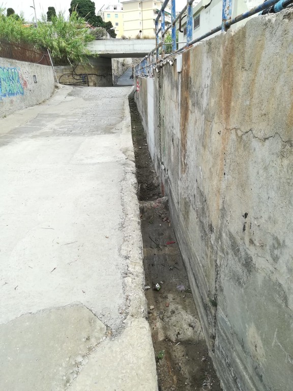 Si tratta di una zona particolarmente difficile e spesso nel degrado tra sporcizia e acqua alta in caso di piena del torrente, circostanza ora difficile per via della siccità.