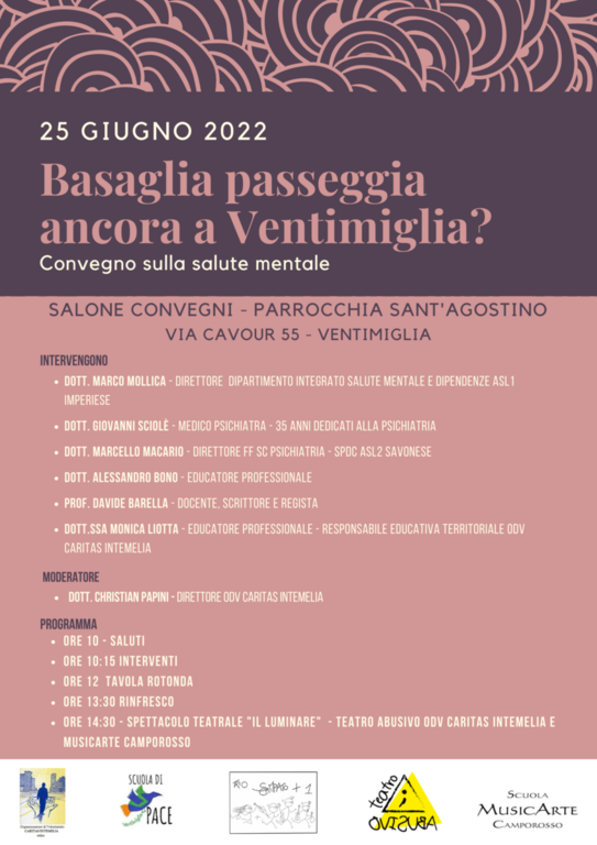 OdV Caritas Intemelia in collaborazione con Scuola di Pace vuole creare un momento di riflessione con la cittadinanza sull’applicazione della Legge 180/78 - Legge Basaglia - in un sistema già in crisi che ha fatto fatica a reggere “l’impatto” Covid.