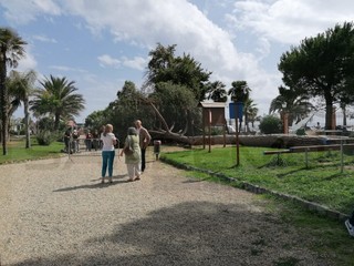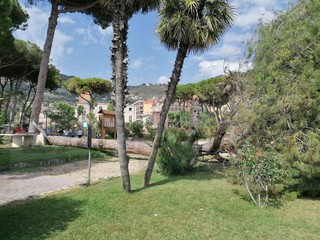 Ventimiglia: pino marittimo crolla ai giardini 'Tommaso Reggio', sfiorata una donna sulla panchina (Foto)