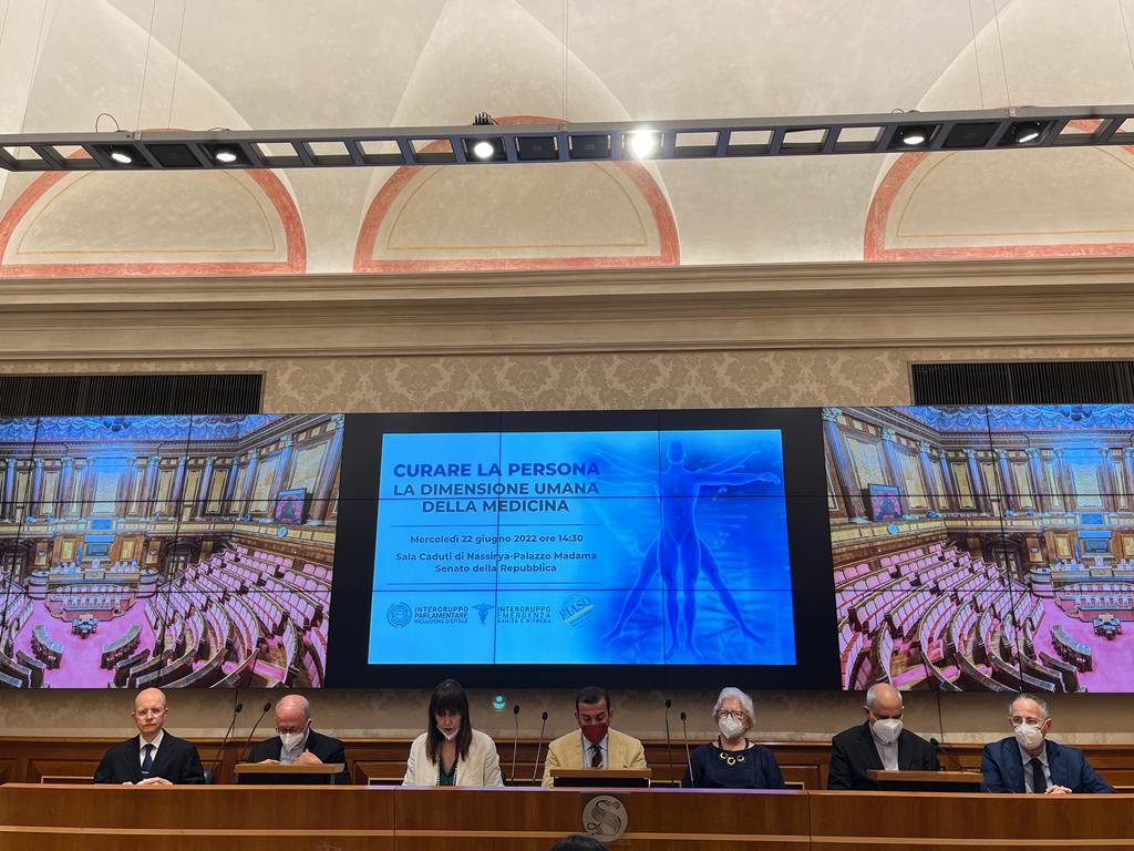 Non solo competenze tecnico-professionali, ma anche e soprattutto empatia, senso di umanità e comprensione sono necessarie oggi ai professionisti della sanità per rafforzare la relazione con i pazienti. Competenze che possono essere trasmesse grazie al contributo delle discipline umanistiche, come antropologia, filosofia ed etica. Sono i temi al centro del volume Curare la persona. La dimensione umana della medicina, di Paolo Petralia, medico bioeticista e Vicepresidente vicario di Fiaso, e Marco Doldi, teologo e bioeticista, presentato oggi a Palazzo Madama. L’evento è stato organizzato dell’Intergruppo Parlamentare Inclusione digitale e dall’Intergruppo Emergenza Sanità e ripresa, con il patrocinio della Federazione Italiana Aziende Sanitarie e Ospedaliere (Fiaso).