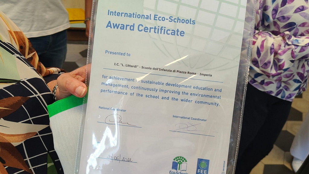 E’ stata consegnata oggi alla Scuola Primaria ‘Littardi’ di Imperia, la ‘Bandiera Verde’ della Fee, prestigioso riconoscimento per una serie di progetti presentati dagli scolari in chiave ambientale.