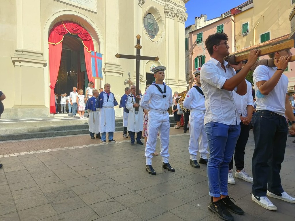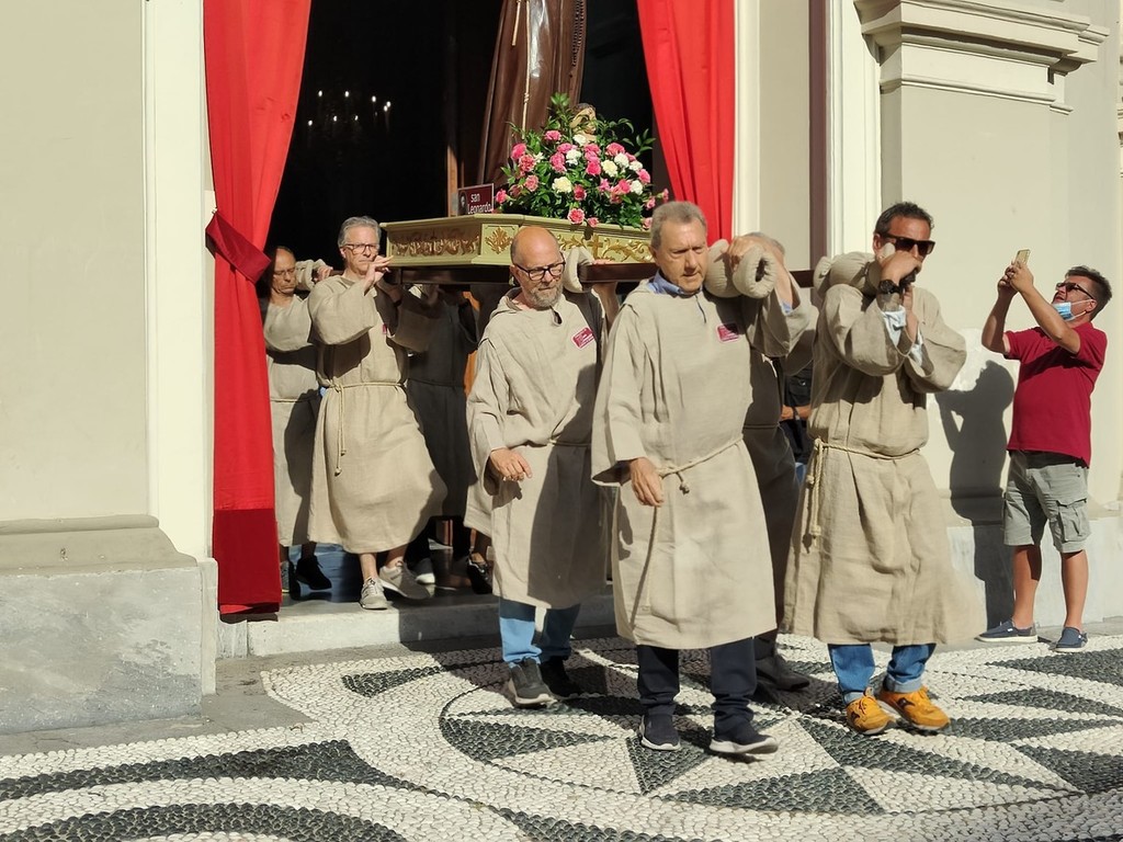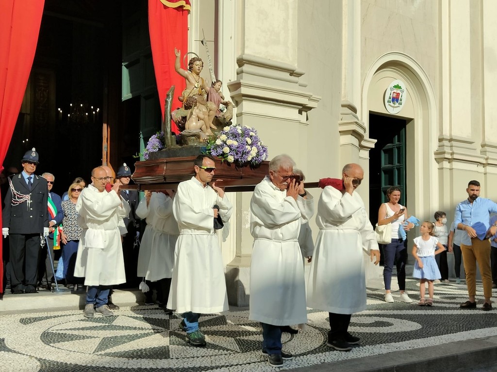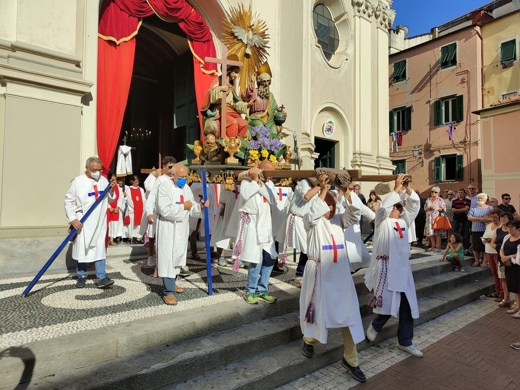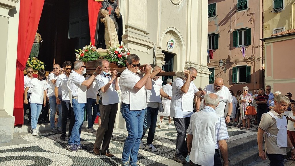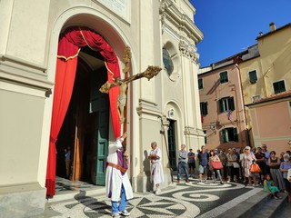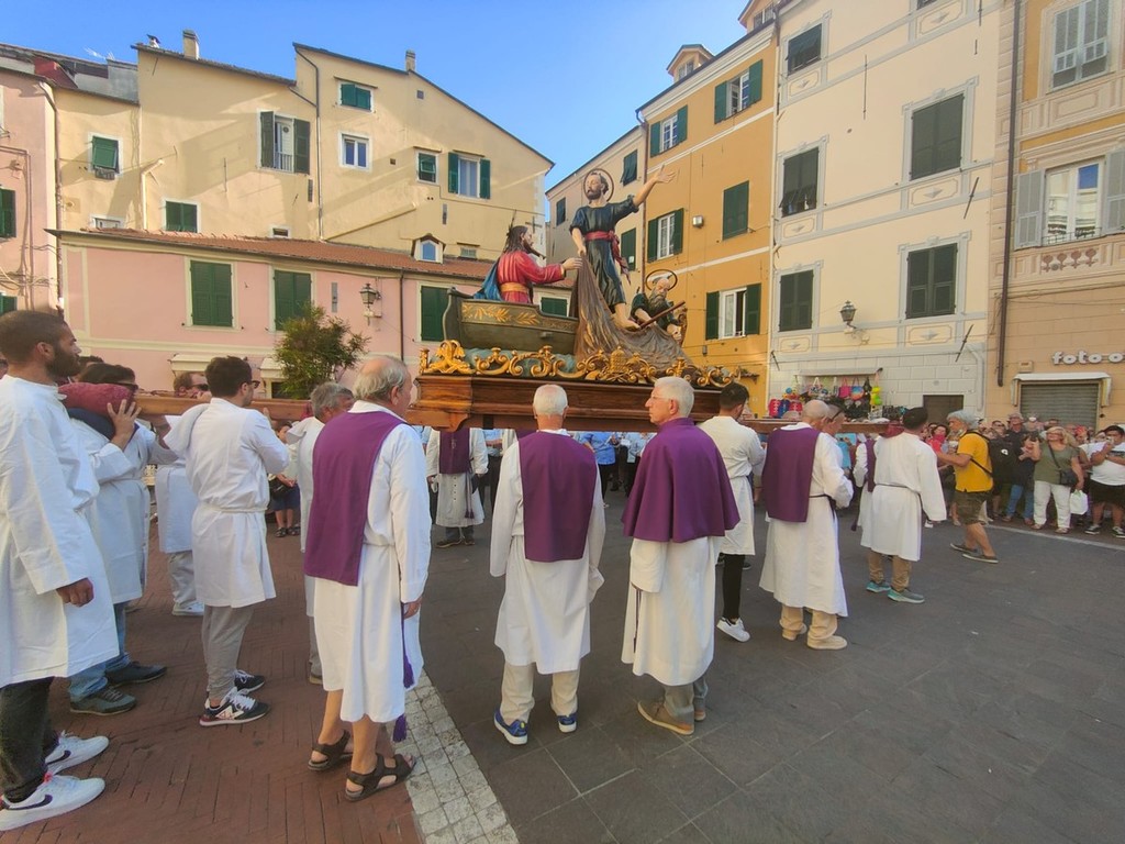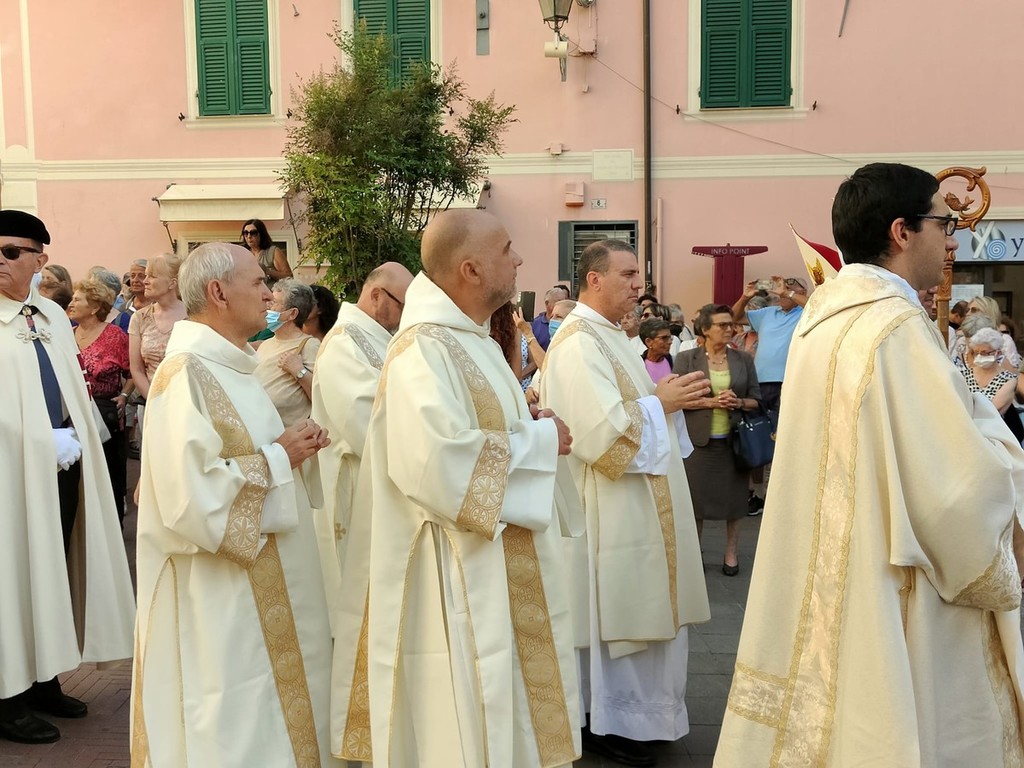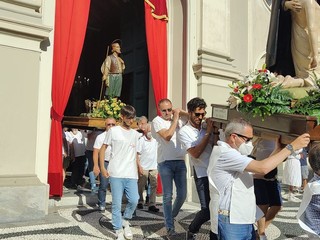 Si è svolta stasera a Imperia, dopo 2 anni di stop per il covid, la storica processione di San Giovanni, patrono di Oneglia: le statue dei santi e i crocifissi sono usciti a una a una dalla Basilica di San Giovanni con la partecipazione del clero e delle Confraternite cittadine.