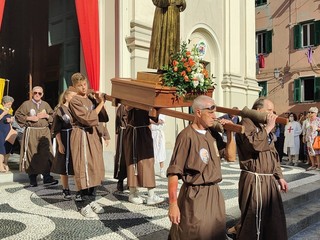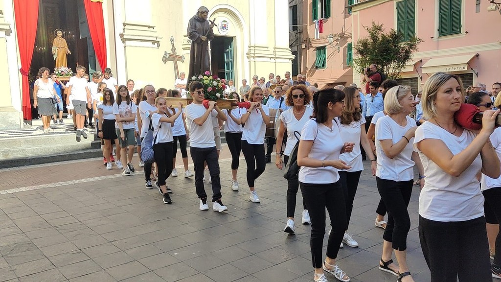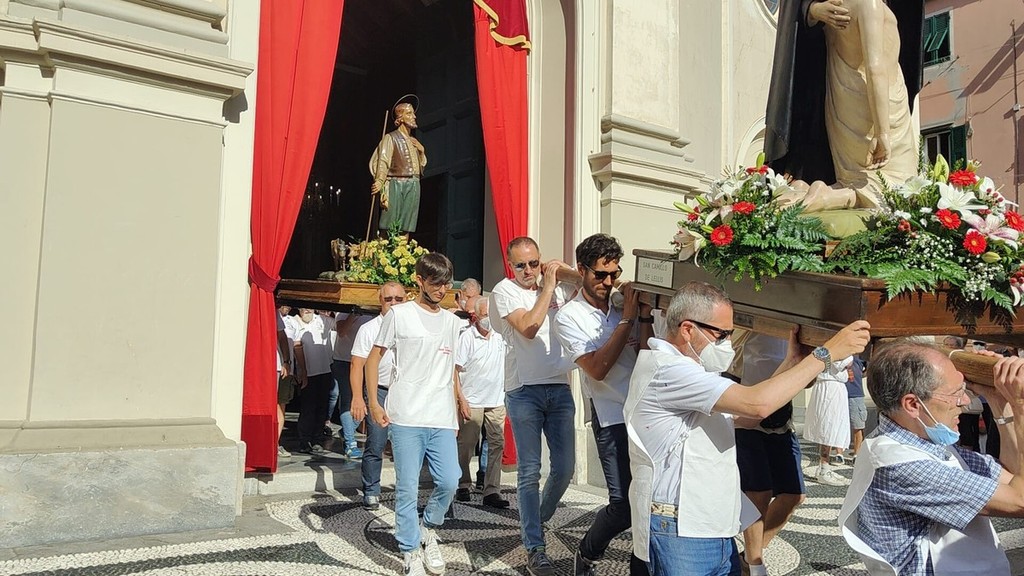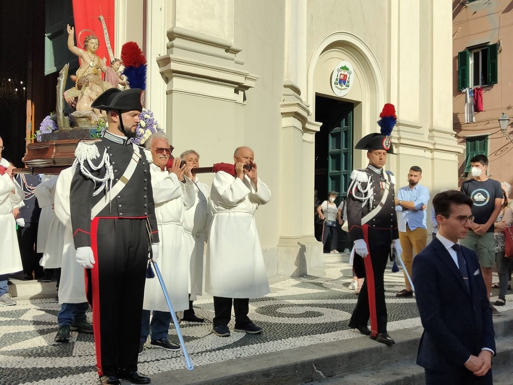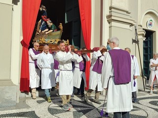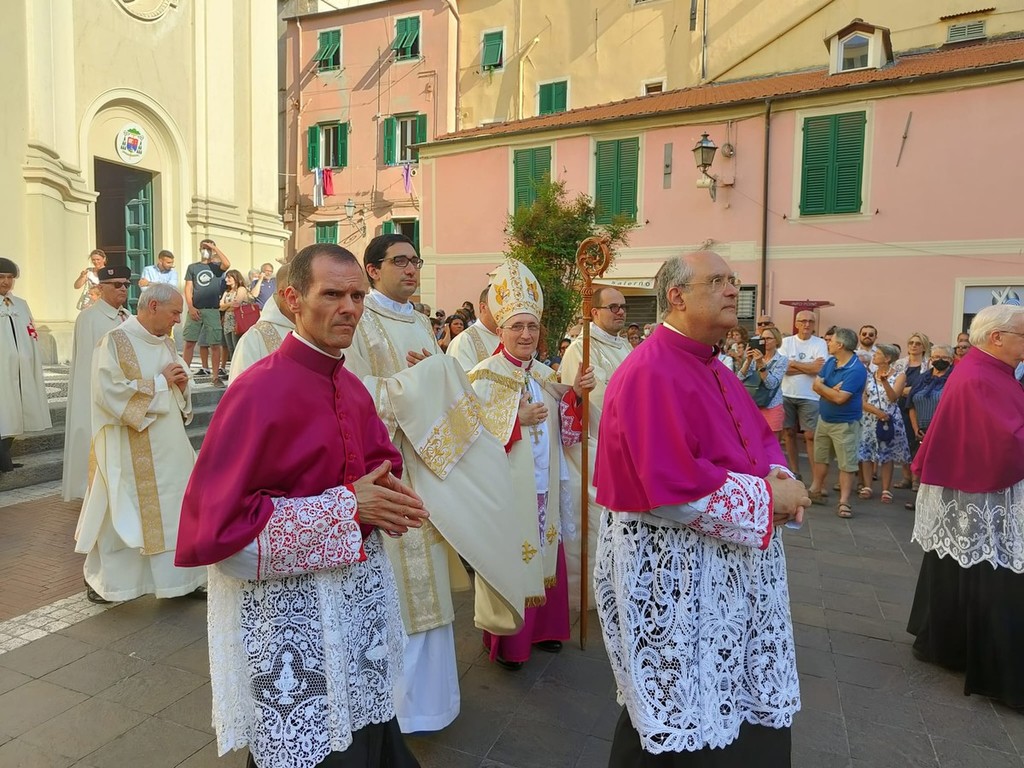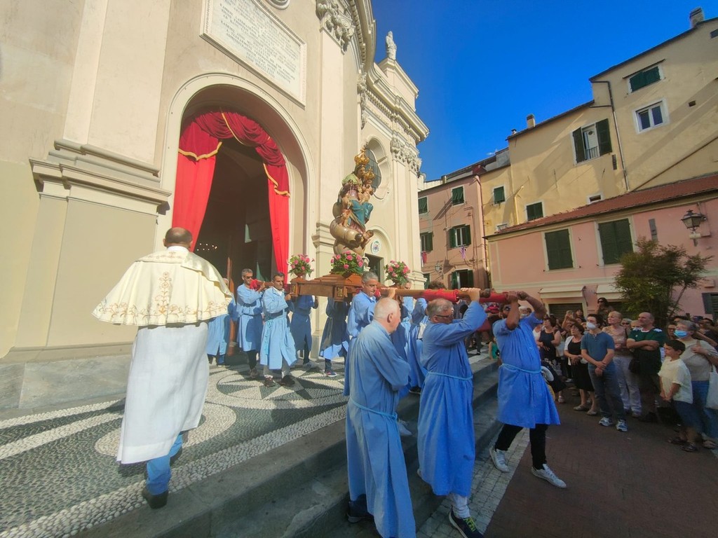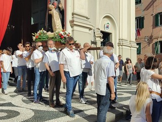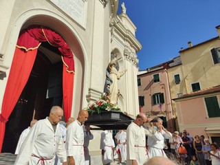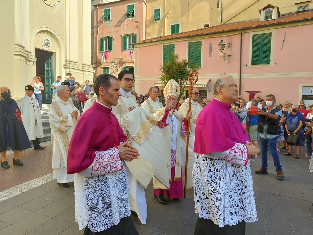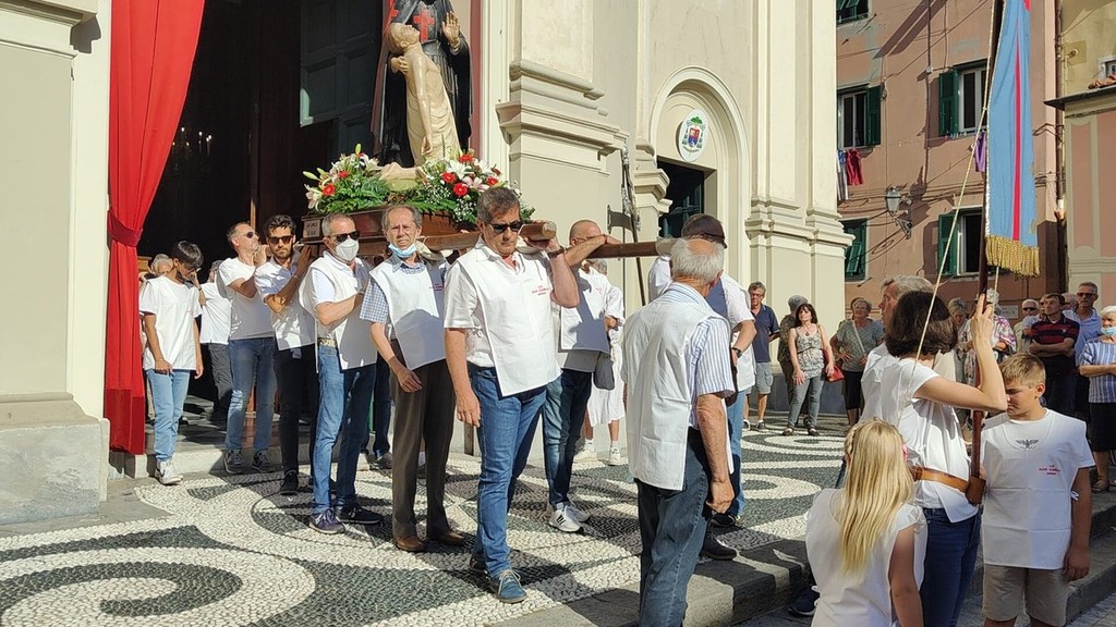 Si è svolta stasera a Imperia, dopo 2 anni di stop per il covid, la storica processione di San Giovanni, patrono di Oneglia: le statue dei santi e i crocifissi sono usciti a una a una dalla Basilica di San Giovanni con la partecipazione del clero e delle Confraternite cittadine.