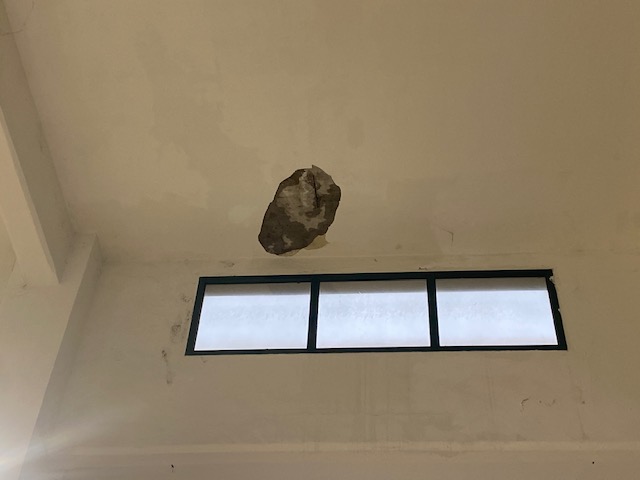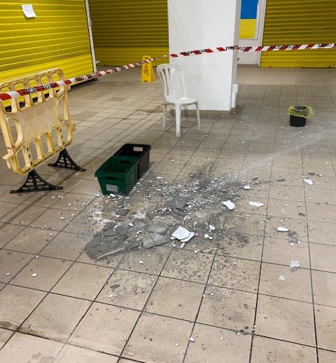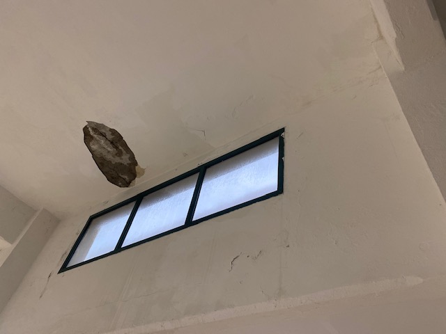 Bordighera: infiltrazioni d'acqua al mercato coperto, crolla una porzione di intonaco (Foto)