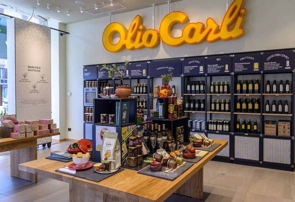 L’Emporio Carli offrirà un vero e proprio viaggio nel gusto: vi si trovano non solo il celebre Olio Carli (di Oliva e Extra Vergine), ma tutti i prodotti e le conserve alimentari della tradizione gastronomica mediterranea come tonno, verdure sott'olio, olive, pesto e sughi pronti, salse, pasta, un’intera gamma Bio, vini, aceti e dolci.