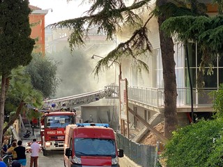 Bordighera: Vigili del Fuoco al lavoro tutta la notte all'asilo di via Napoli, l'intervento andrà ancora avanti (Foto e Video)
