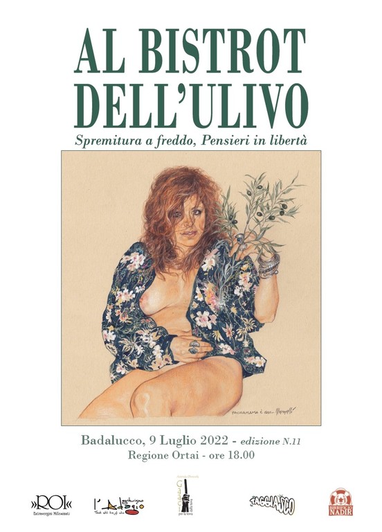 Tre anni dopo l'ultima edizione torna sabato 9 luglio (Badalucco, regione Ortai, ore 18) il rituale del Bistrot dell'Ulivo (Spremitura a freddo, pensieri in libertà), la riflessione seriosa e scanzonata che dal 2010 (siamo alla 11ª edizione, compreso quella numero zero) riunisce in valle Argentina numerosi nomi del mondo dello spettacolo, dell'imprenditoria, della cultura, del giornalismo, radunati da Franco e Rossella Boeri Roi, frantoiani e organizzatori dell'evento.