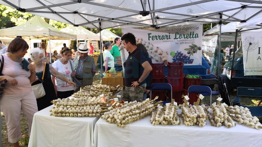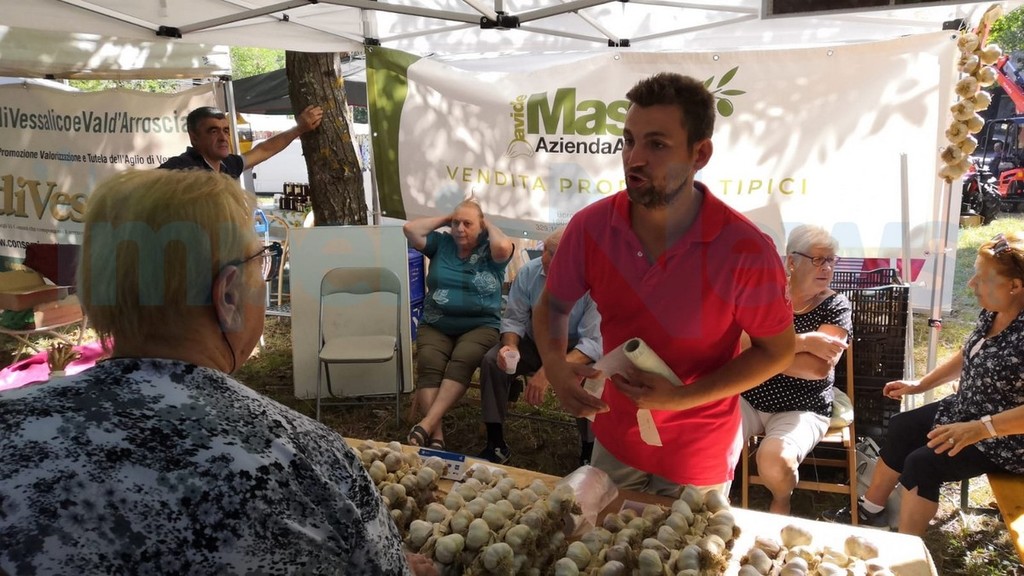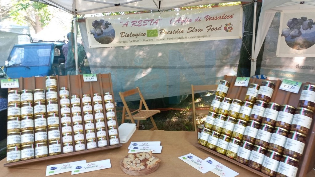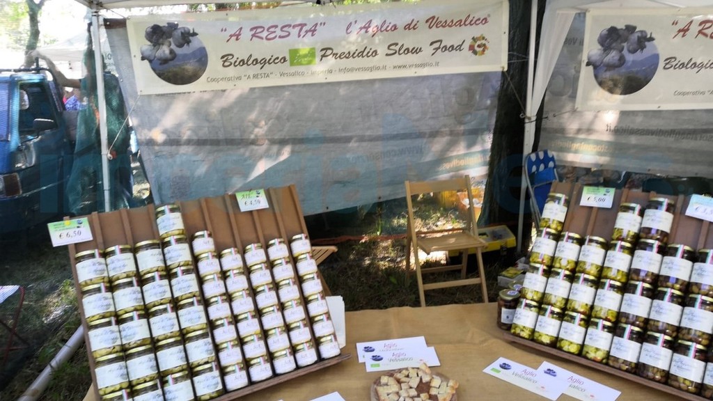 Ore 11.00 “Chi mangia aglio, campa gli anni di Noè”, incontro sulle caratteristiche dell’aglio di Vessalico con: Federica Leuzzi (nutrizionista), Roberto Pisani (enogastronomo), dott. Claudio Battaglia (presidente LILT - Lega Italiana per la Lotta contro i Tumori), Luciano Vazzano (direttore CNA Imperia), Paola Giliberti (sindaca di Vessalico), Andrea Ferrari (presidente del Comitato per la Tutela dell’Aglio di Vessalico), Daniela Di Forti (responsabile condotta Slow Food Imperia) e Alberto Marini, (presidente della Cooperativa A Resta, presidio Slow Food). Conclusioni di Cristiano Tomei (coordinatore nazionale CNA Turismo e Commercio).