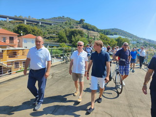 Quindi c’è stato il simbolico incontro tra i due sindaci, Claudio Scajola e Paolo Tornatore, e la vera ‘apertura’ del tratto di collegamento tra le due ciclabili. Tornando indietro, verso Imperia, c’è stato anche il tempo per una dimostrazione di attività sportiva all'aria aperta.