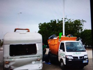 Imperia, blitz mattutino dei vigili: rimossa la roulotte all’ingresso del porto turistico. Era diventata rifugio di senzatetto (foto)