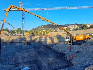 E’ sicuramente un momento importante per l’opera che Sanremo attende da oltre 50 anni e che vedrà il termine dei lavori entro il 2023. La piastra di fondazione poggia su 250 pali gettati in opera e del diametro di 50 cm ciascuno che arrivano fino allo strato roccioso sottostante posto a circa 17 metri sotto l’ex piazzale. Fino a tarda sera saranno circa 700 metri cubi di calcestruzzo.