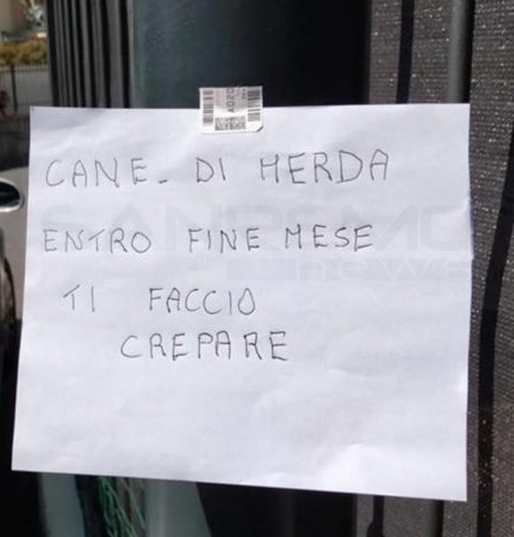 Bordighera: "Cane di merda ti faccio crepare", cartello di minacce e bocconi avvelenati in via Giulio Cesare (Foto)