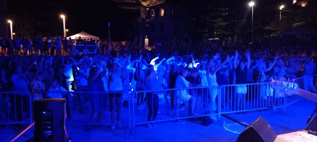 Oltre 600 persone, hanno prima assistito al concerto dei Bop Frog con le più belle canzoni da ballare degli anni 80, per poi proseguire la serata all’insegna delle canzoni del momento con l’entrata in scena dei dj di Radio Dimensione Suono Claudio Guerrini, Giuditta Arecco e Marco Valotta che hanno animato la serata fino alle 1.30.