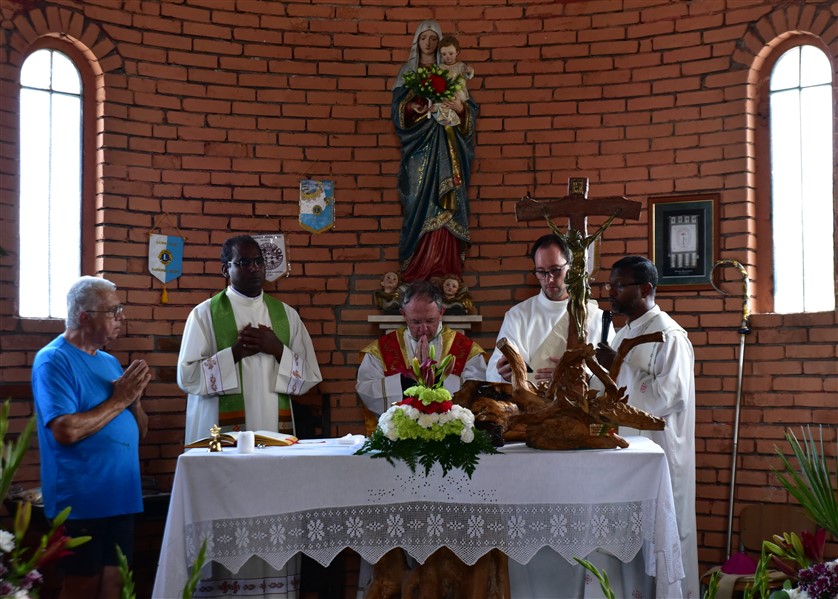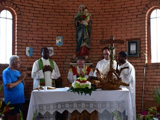 La santa messa è stata celebrata alle ore 16.00 da S.E. Mons. Antonio Suetta, Vescovo della Diocesi di Ventimiglia-Sanremo e dai concelebranti Don Gerad, parroco della Chiesa di San Pietro apostolo-Sanremo, Don Jeyaraj, parroco di Apricale e dal Diacono Don Sueli.