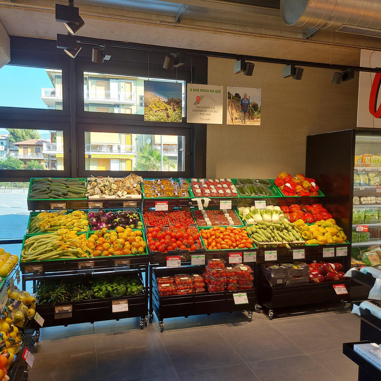 Nel nuovo punto vendita, sviluppato su di una superficie di 589 mq,è presente un’area dedicata a frutta e verdura, dove ogni giorno viene proposta una selezione delle migliori eccellenze di stagione; presente anche un corner dedicato ad un’ampia selezione di prodotti che spaziano dal banco del fresco, come salumi e formaggi, alle specialità della rinomata gastronomia Arimondo. A disposizione dei clientianche l’area forno, con una ricca scelta di pane fresco, proveniente dal prestigioso laboratorio targato Arimondo; un occhio di riguardo anche al reparto macelleria, con un ricco assortimento di carne proveniente dalla rinomata macelleria Tallone; novità del punto vendita, il reparto pescheria con un’ampia scelta di prodotti italiani, per garantire alla clientela tutta la bontà e la freschezza di ciò che il mare offre.