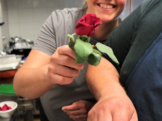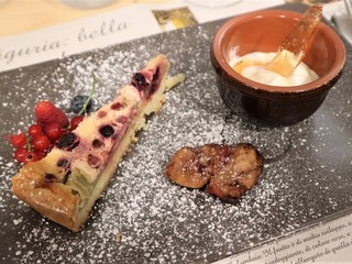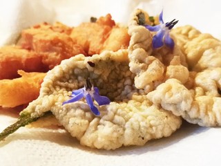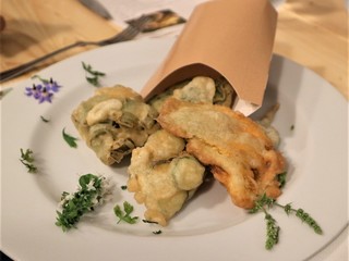 Proposte interessanti anche con la carne, come il coniglio, ovviamente in una originale versione alla ligure, ma anche rostelle e filetti alla griglia abbinati alle verdure di stagione o ai funghi. Con i fiori raccolti nelle campagne o provenienti dalla coltivazione biologica di Ravera Bio di Albenga, Alessandro crea dei sorbetti alla begonia squisiti, dei frisceu di petali di rosa, che serve in abbinamento alla torta di Rabarbaro, coltivato direttamente dallo chef nell’orto di famiglia, e uno squisito gelato di finto miele di tarassaco. I dolci sono assolutamente da provare.