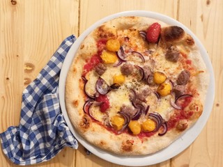 L’Osteria propone anche la pizza “fai da te”, che permette di ordinare una pizza personalizzata scegliere fra gli ingredienti indicati sulla lavagna con i relativi prezzi.
