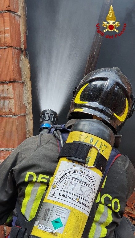 Pieve di Teco: incendio in un magazzino in zona Calderara, indagano i Carabinieri (Foto)